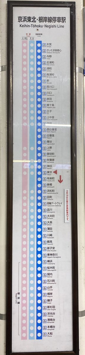 Source: blogimg.goo.ne.jp この電車は京浜東北線各駅停車(or 電車 not sure)、大宮行きです。 here is the list of 普通 trains that skip some stations for railroad maniacs.